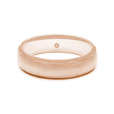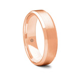 The mirror shine polish on the bevelled edges of this matte finished mens 9ct rose gold flat court wedding ring give a stylish finish to this classic design.