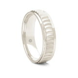 Mens Matte Finish 9ct White Gold Flat Court Shape Wedding Ring With Semi-Circular Pattern and Polished Edges