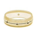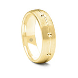 Eight diamond cut details bisect the central polished groove on this men's 9ct yellow gold satin polished classic court shaped wedding ring.