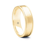 Mens Matte Finish 9ct Yellow Gold Flat Court Shape Wedding Ring with Millgrain Edges
