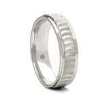Mens Matte Finish Palladium 500 Flat Court Shape Wedding Ring With Semi-Circular Pattern and Polished Edges