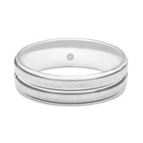 Two outer stepped grooves team up with a central stepped groove to give this mens platinum 950 flat court shape wedding ring two distinctly raised and satin finished surfaces.