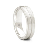 Mens Matte Finish Platinum 950 Flat Court Shape Wedding Ring With Centre and Outer Grooves
