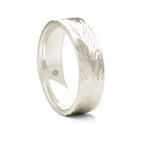 Mens Polished 18ct White Gold Flat Court Wedding Ring With Feathered Pattern