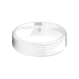 The slightly sloping edges ensure that the grooves encircling this mirror polished men's 9ct white gold flat court shape wedding ring become an immediately striking design.