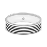 The slightly raised millgrain patterned edges complement the subtle, highly polished, grooves circling the centre of this men's 9ct white gold court shape wedding ring.