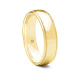 With its classic millgrain patterned edges combined with a traditional polished surface, this men’s 9ct yellow gold court shaped wedding ring has a timeless and understated elegance.