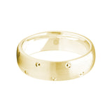 The satin finish on this mens traditional 18ct rose gold court shape wedding ring is given a subtle update with the addition of strategically placed diamond cut details.