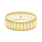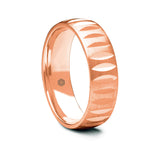 This matte finished mens 18ct rose gold court shape wedding ring features a series of highly polished and hand-carved grooves around its circumference.