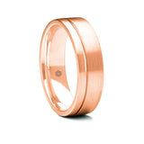 Mens Satin Finish 18ct Rose Gold Flat Court Shape Wedding Ring With Off-Set Groove