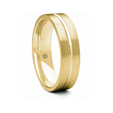 Mens Satin Finish 18ct Yellow Gold Flat Court Shape Wedding Ring With Centre Groove
