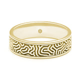 The smooth and seemingly random channels on the surface of this men's 9ct yellow gold flat court wedding ring give it an intriguing and maze like appearance. If you have an idea of your own, please do get in touch as we can very easily create your perfect wedding rings using your inspiration and design.