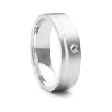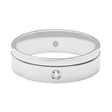 Mens Matte Finished Flat Court Wedding Band With a Single Offset Groove and Round Brilliant Cut Diamond