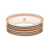 A central textured channel ensures that the highly polished series of grooves are the stand out feature of this mens 9ct rose gold flat court shape wedding band.