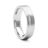 Mens Satin Finished Flat Court Wedding Ring With Offset Groove and Three Princess Cut Diamonds