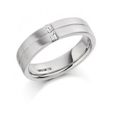 Satin Finish Mens Flat Court Wedding Ring With Two Baguette Cut Diamonds