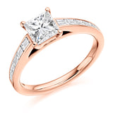 18ct Rose Gold Diamond Engagement Ring With GIA Certified Princess Cut Centre Stone and Baguette Cut Set Shoulders