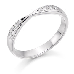 This Ladies Platinum 950 Half Set Round Brilliant 0.15ct Diamond 3mm Wedding Ring is in a grain set. A grain set wedding ring has a small margin of metal either side of the diamond which protects the ring over time. Each diamond is then held in place by a small number of metal beads or grains. This offers an extra sparkle as light not only bounces off each diamond but, also off the grains.
